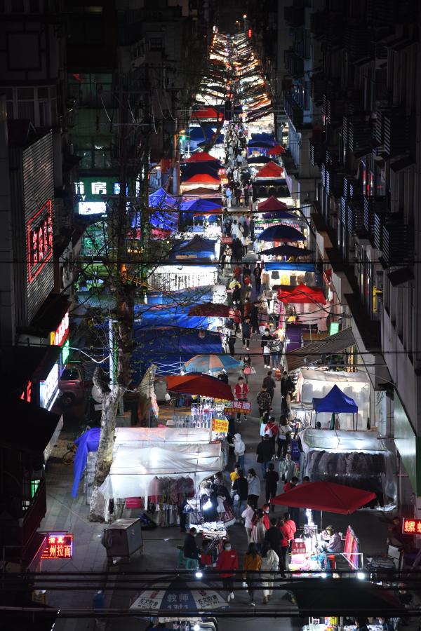 Photo taken on March 29, 2021 shows a night market in Wuhan, central China's Hubei Province. (Xinhua/Cheng Min)