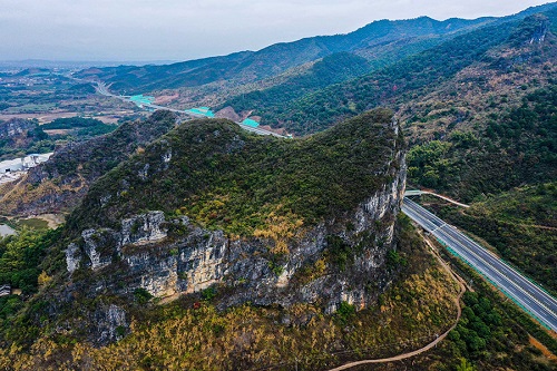 A section of expressway from Huaiji county to Yunan county in South China's Guangdong province cuts through the landscape on Dec 18, 2020. The 102-kilometer expressway is a cultural and ecological tour route of Zhaoqing city, which will drive regional economic development in northwestern Guangdong. [Photo/Xinhua]