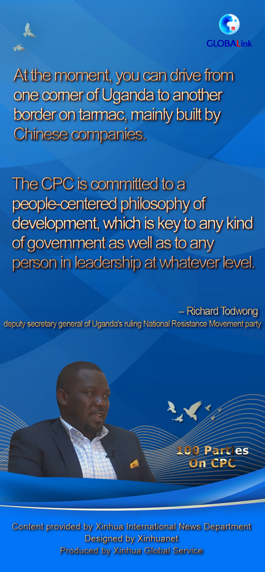 Todwong also stressed the importance of the strong leadership of the CPC. "China is developing rapidly with the population, they have fought poverty, they fought all these things that we talked about in other countries, because the leadership has remained very firm."