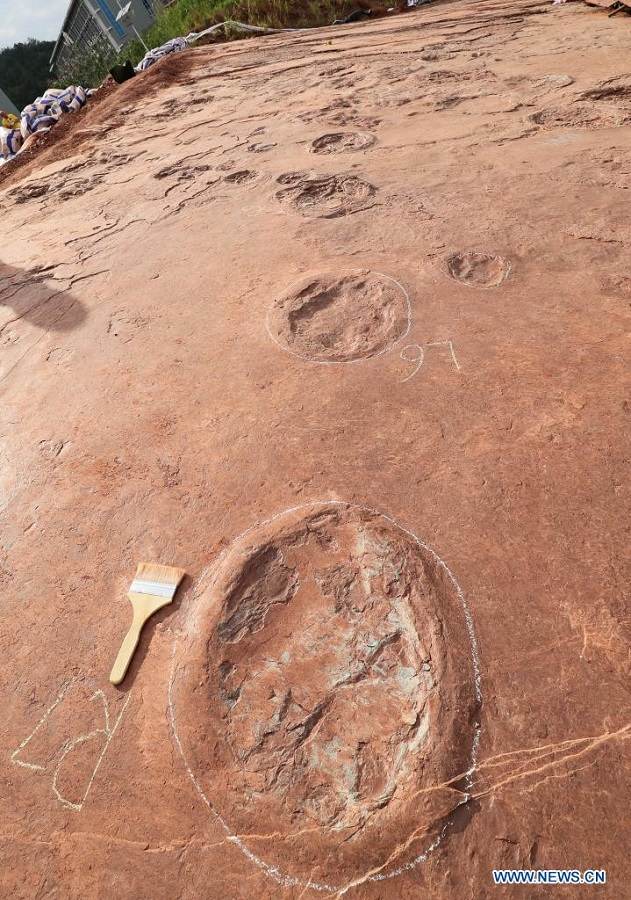 Newly-found dinosaur footprints seen at excavation site in SE China (8)