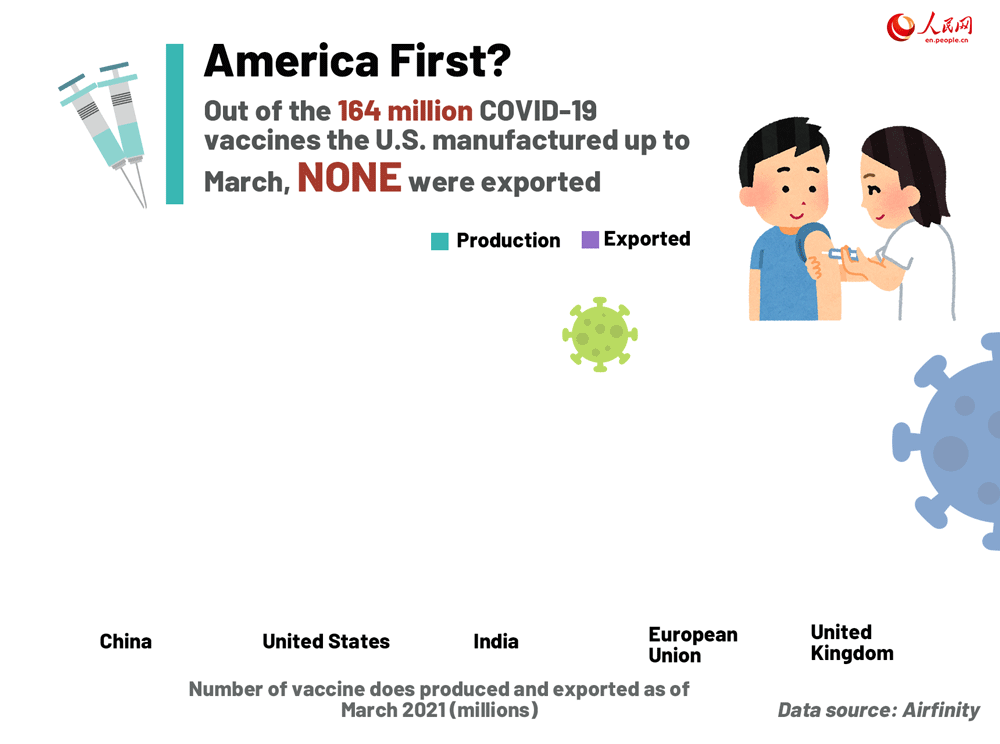 America First? Out of the 164 million COVID-19 vaccines the U.S. manufactured up to March, none were exported