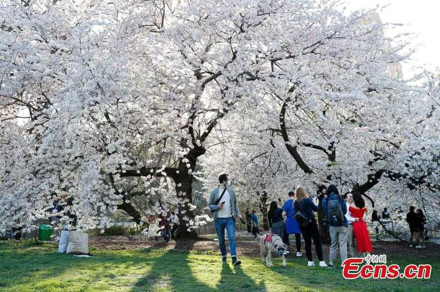 People enjoy the spring scenery in Central Park in New York, the U.S., April 13, 2021. (Photo: China News Service/Liao Pan)