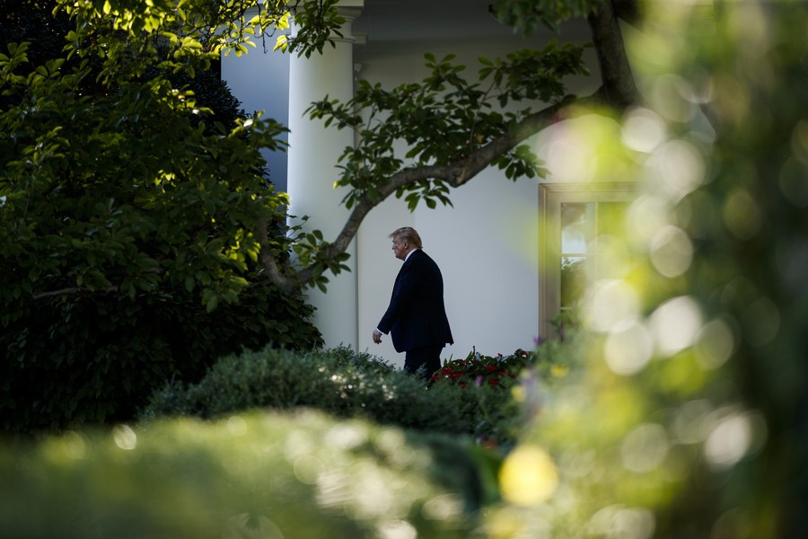Former U.S. President Donald Trump leaves the White House in Washington, D.C., the United States, on Aug. 30, 2019. (Photo by Ting Shen/Xinhua)