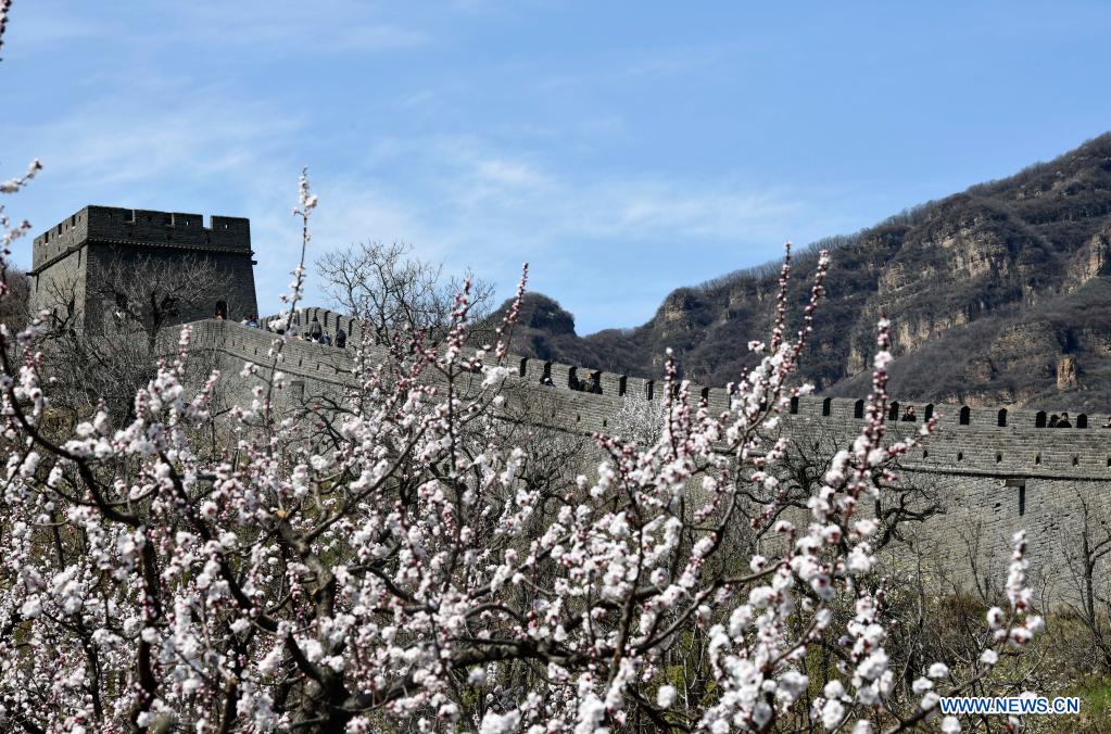 Photo taken on April 4, 2021 shows the scenery of the Great Wall at Huangya Pass in Tianjin, north China. In recent years, more and more Chinese people living in cities prefer to go to the countryside for leisure and relaxation, which facilitates the development of rural tourism. Huangyaguan village, at the foot of the Great Wall of Huangya Pass in Tianjin, has benefited from this trend. (Xinhua/Zhao Zishuo)