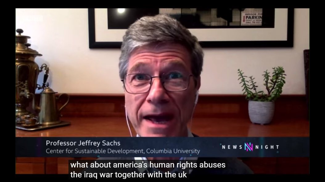 On April 15, Professor Jeffrey D. Sachs, a current serving Environmental Advisor to the UN, slammed the BBC for ignoring America's human rights abuses during an interview about climate change on BBC's Newsnight program.