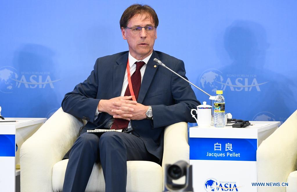 Jacques Pellet, head of the International Committee of the Red Cross Regional Delegation for East Asia, speaks at a session titled Joint-Construction of the "Silk Road of Health" during the Boao Forum for Asia Annual Conference in Boao, south China's Hainan Province, April 18, 2021. (Xinhua/Yang Guanyu)