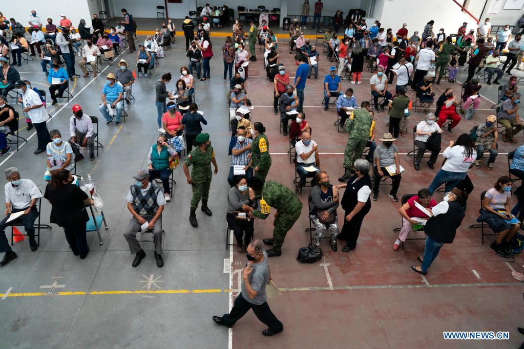 People receive Sinovac COVID-19 vaccines at a vaccination center in Ecatepec, Mexico, on April 16, 2021. Chinese vaccines have been part of health cooperation that Mexico and China have been maintaining since last year to tackle COVID-19. (Xinhua/David de la Paz)