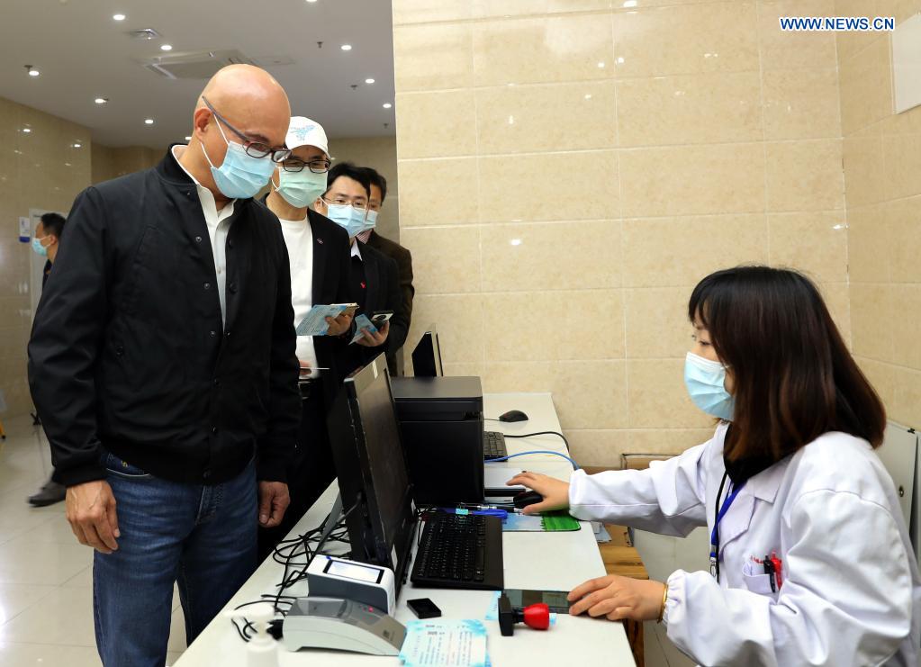 Taiwan compatriots wait to receive COVID-19 vaccination records at a community health center in Malu Town of Jiading new city, east China's Shanghai, April 19, 2021. Shanghai started COVID-19 vaccination for Taiwan compatriots aged from 18 to 75 in the city on Monday following the principle of giving informed consent and voluntary participation. (Xinhua/Liu Ying)
