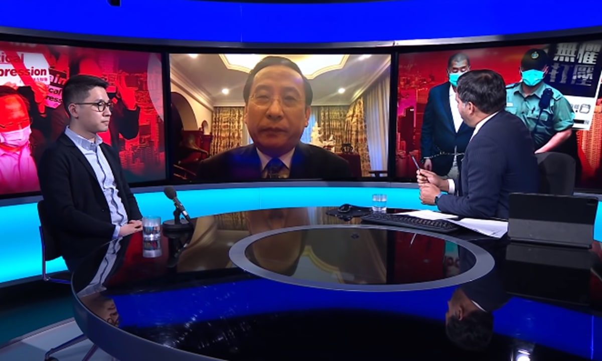 Victor Gao, chair professor of Soochow University and vice president of the Center for China and Globalization, was invited to BBC's Newsnight to debate with Law, after other opposition figures such as Martin Lee Chu-ming and secessionists like Jimmy Lai Chee-ying were sentenced, which the BBC host described as 60- and- 70-something men being thrown into jail for participating in "peaceful" protests.