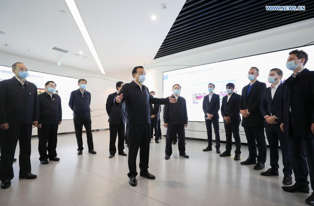 Chinese Premier Li Keqiang, also a member of the Standing Committee of the Political Bureau of the Communist Party of China Central Committee, exchanges with entrepreneurs from countries in Europe and Asia in Chengdu, southwest China's Sichuan Province, April 20, 2021. Li made an inspection tour in southwest China's Sichuan Province from Monday to Tuesday. (Xinhua/Ding Haitao)