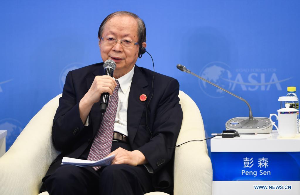 Peng Sen, President of China Society of Economic Reform, speaks at a sub-forum themed "Dual Circulation - China's New Growth Paradigm" during Boao Forum for Asia (BFA) annual conference in Boao, south China's Hainan Province, April 21, 2021. A sub-forum themed "Dual Circulation - China's New Growth Paradigm" was held in Boao on Wednesday. (Xinhua/Yang Guanyu)