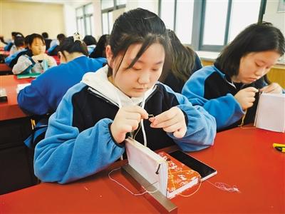 The school has established a design course for students to integrate the elements of ICH into the design of fashion products. Wang Tiantian, a teacher, said that the market-oriented course is intended to satisfy the requirements of enterprises and students are encouraged to participate in design contests to improve their skills.