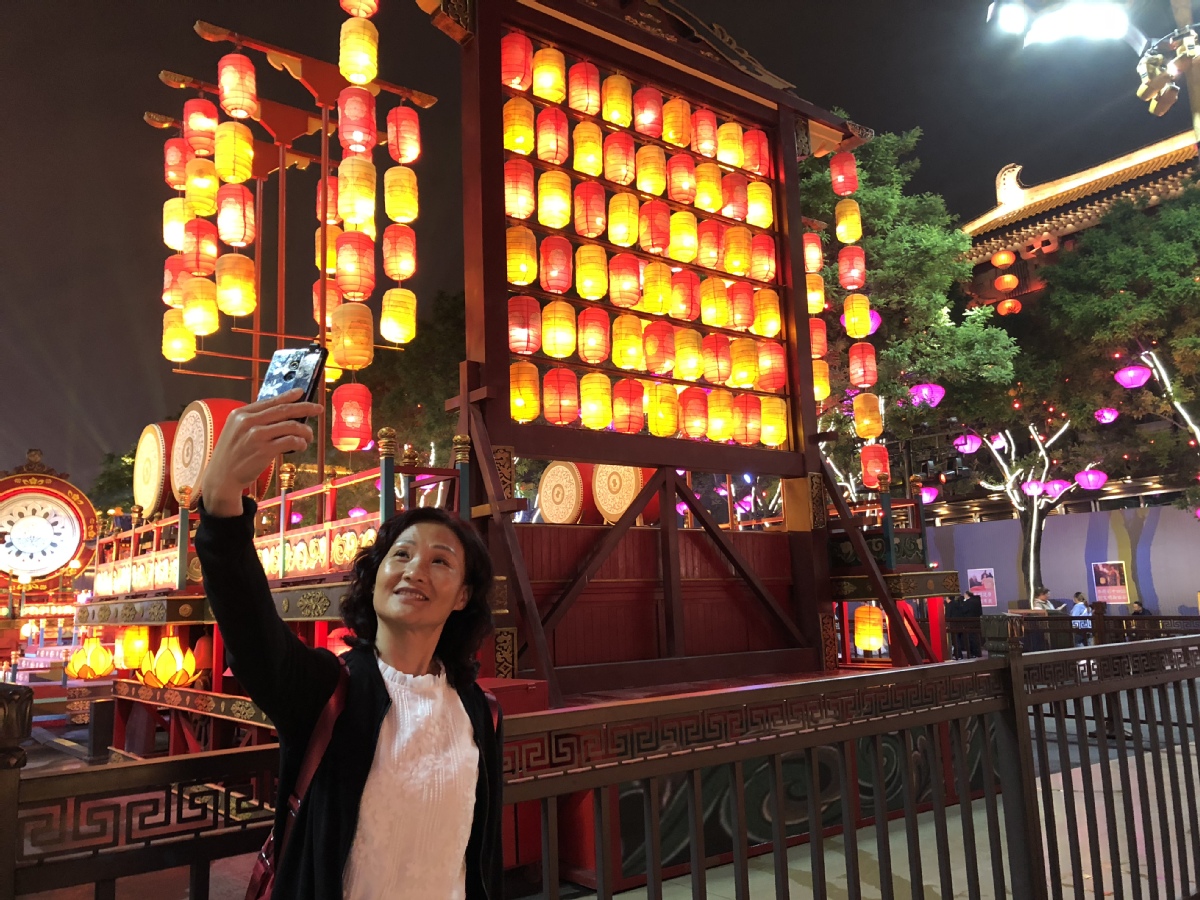 A tourist takes a selfie at the Great Tang All Day Mall in Xi'an, Shaanxi province on April 21, 2021. [Photo by Liu Xiaozhuo/chinadaily.com.cn]