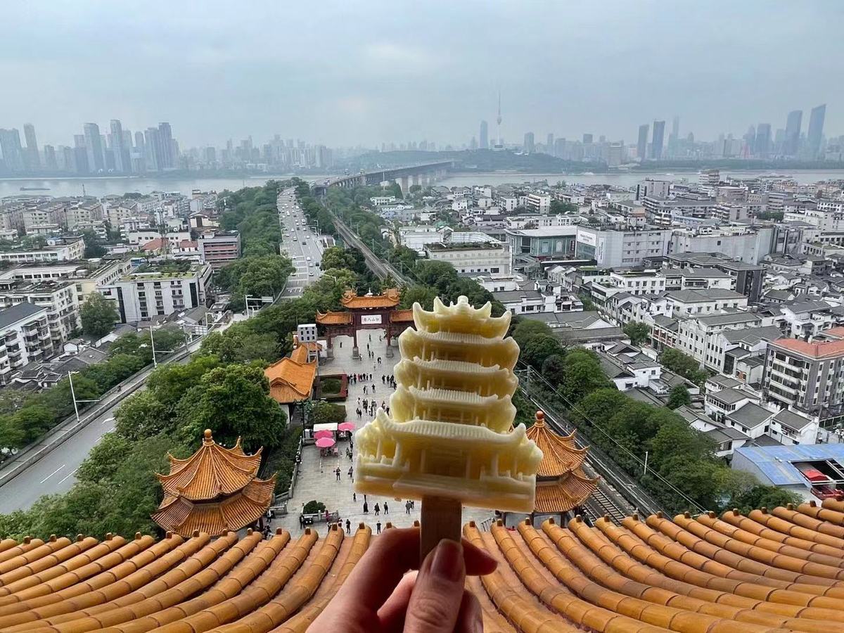 Yellow Crane Tower Park has been launching cultural and creative products to attract tourists. The park started to sell ice cream in the shape of the tower on April 4. Zhang Jie, a staff member of the park in charge of marketing, said 3,900 ice creams have been sold during its first six hours, and the ice cream has gone viral online.