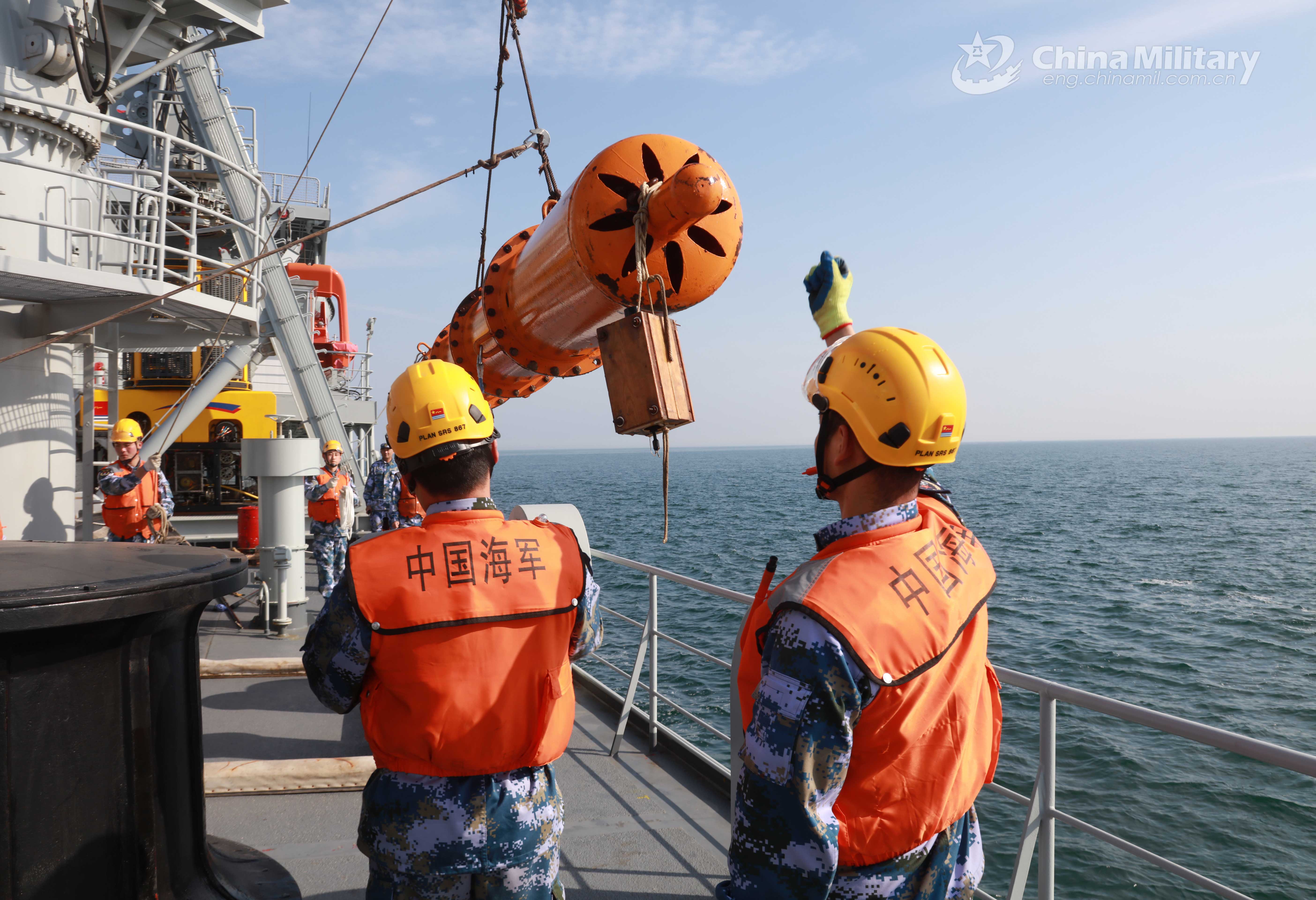 Sailors assigned to a search and rescue flotilla with the navy under the PLA Northern Theater Command carry out a salvage operation during a maritime training exercise in early April, 2021. The training was aimed at examining the troops' rescue ability in actual combat context. (eng.chinamil.com.cn/Photo by Zhang Zehang)