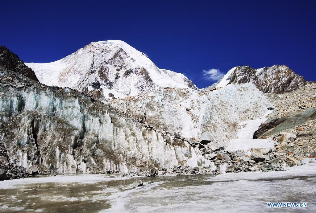 Photo taken with a mobile phone on April 24, 2021 shows the glacial landform at the foot of Mount Qungmknag in Nyemo County of Lhasa, southwest China's Tibet Autonomous Region. (Xinhua/Shen Hongbing)