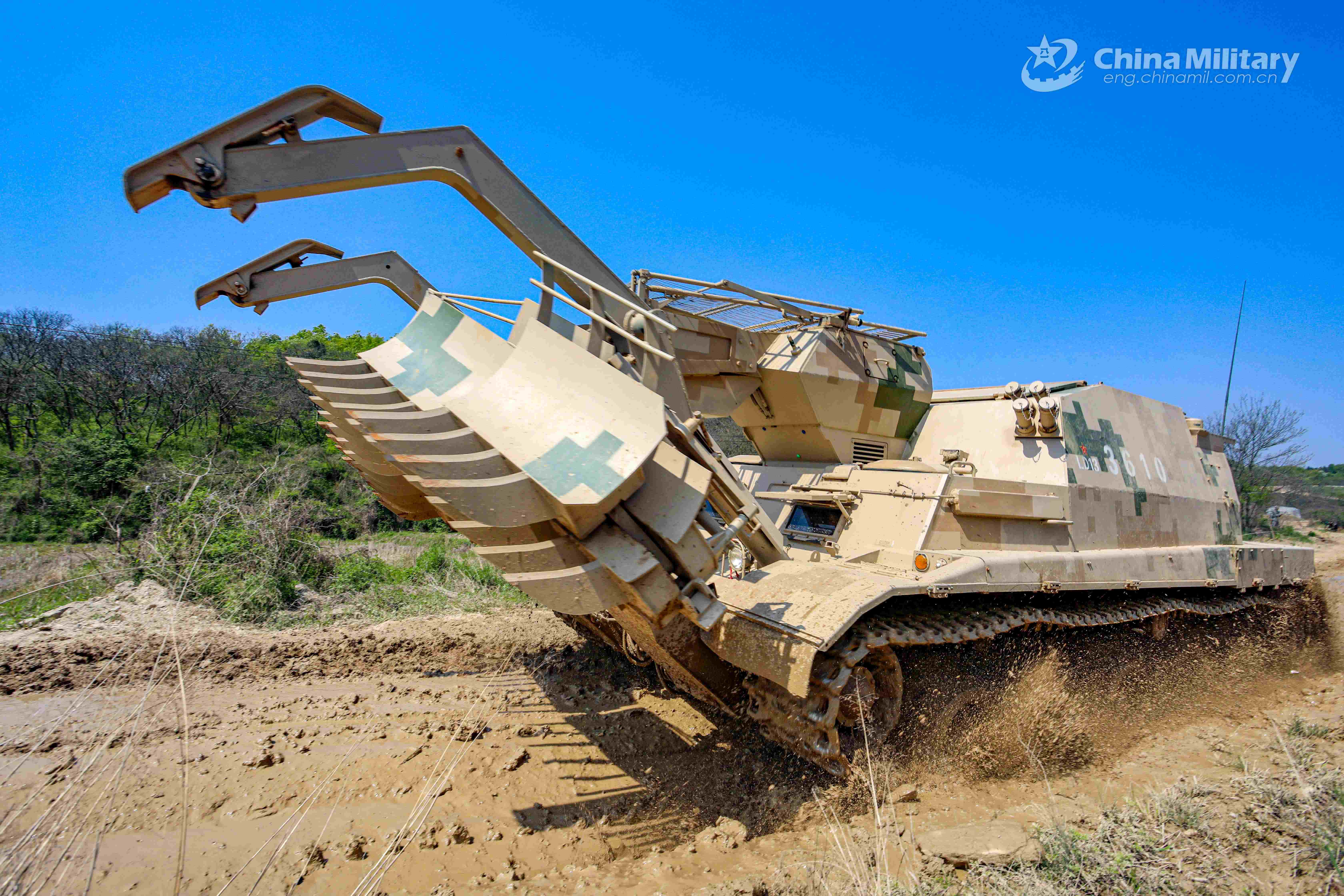Armored minesweeping vehicle attached to the armored detachment of a brigade under the PLA 72nd Group Army carries out a driving skill training exercise on April 12, 2021. (eng.chinamil.com.cn/Photo by Zhang Mao)