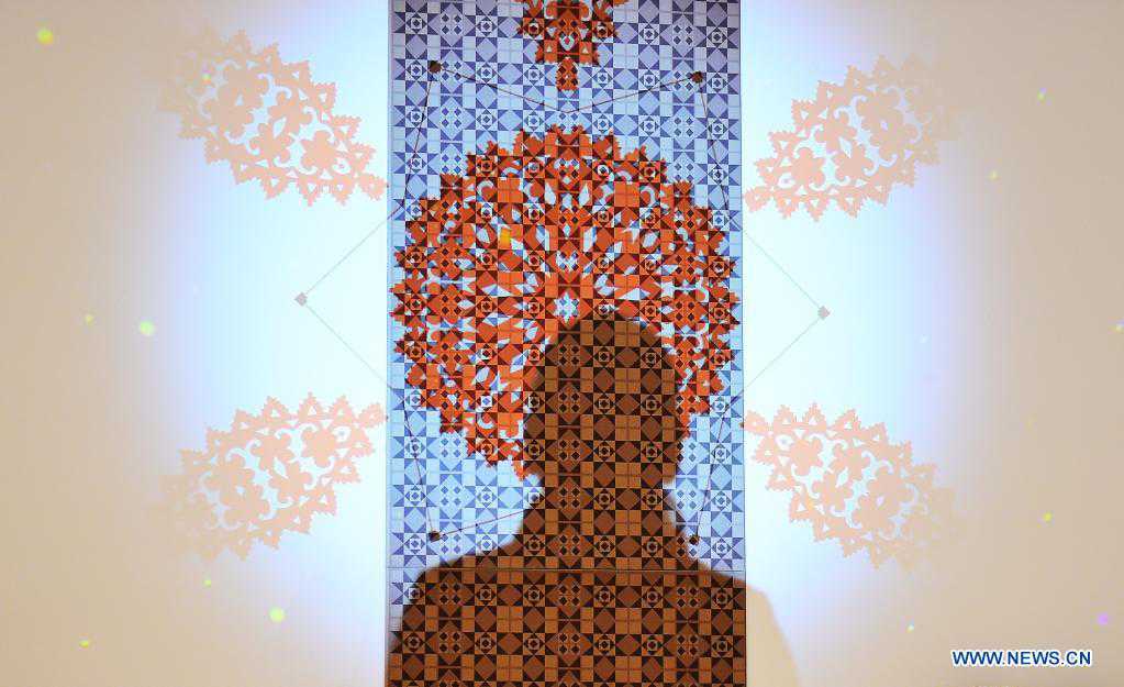 A visitor views an exhibit at an exhibition of traditional crafts with Xinjiang characteristics in Urumqi, northwest China's Xinjiang Uygur Autonomous Region, April 26, 2021. (Xinhua/Hou Zhaokang)