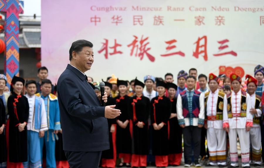 Xi visited a cultural exhibition of Zhuang ethnic group in the Anthropology Museum of Guangxi and watched cultural performances.