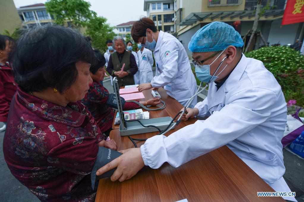 Medical professionals provide free medical service to villagers at Dongming Village, Donglin Township, Wuxing District, Huzhou City of east China's Zhejiang Province, April 27, 2021. (Xinhua/Xu Yu)