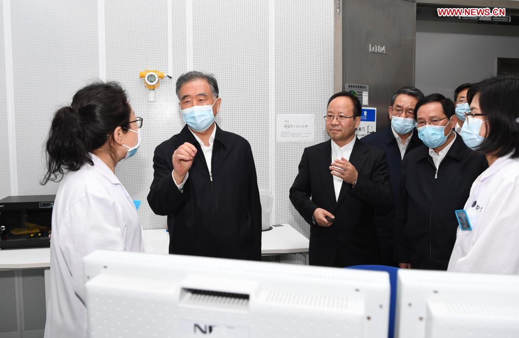 Wang Yang, a member of the Standing Committee of the Political Bureau of the Communist Party of China Central Committee and chairman of the National Committee of the Chinese People's Political Consultative Conference, visits a national facility for protein science in east China's Shanghai, April 26, 2021. Wang made a research tour to east China's Shanghai and Zhejiang Province from Monday to Wednesday. (Xinhua/Rao Aimin)