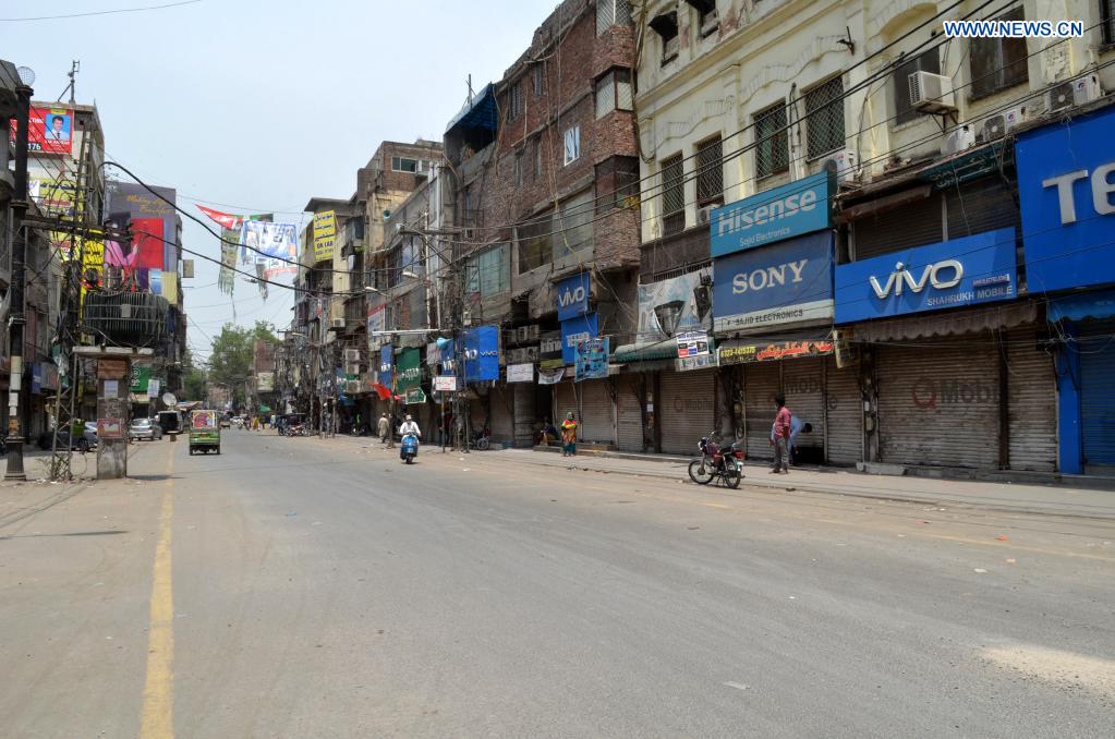 Photo taken on May 2, 2021 shows a closed market during a lockdown to control the spread of COVID-19 in Lahore, Pakistan. Pakistan is struggling to contain the third wave of COVID-19. The country reported 4,414 new COVID-19 cases over the last 24 hours, bringing the total number of confirmed cases to 829,933, the country's National Command and Operation Center said on Sunday. (Photo by Jamil Ahmed/Xinhua)