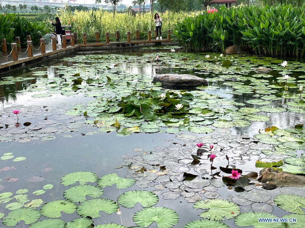 Tourists visit the Nakao River wetland park in Nanning, south China's Guangxi Zhuang Autonomous Region, May 5, 2021. (Xinhua/Zhou Hua)