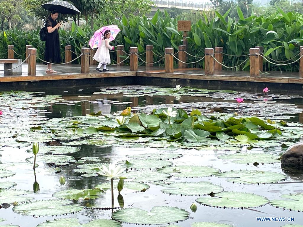 Tourists visit the Nakao River wetland park in Nanning, south China's Guangxi Zhuang Autonomous Region, May 5, 2021. (Xinhua/Zhou Hua)