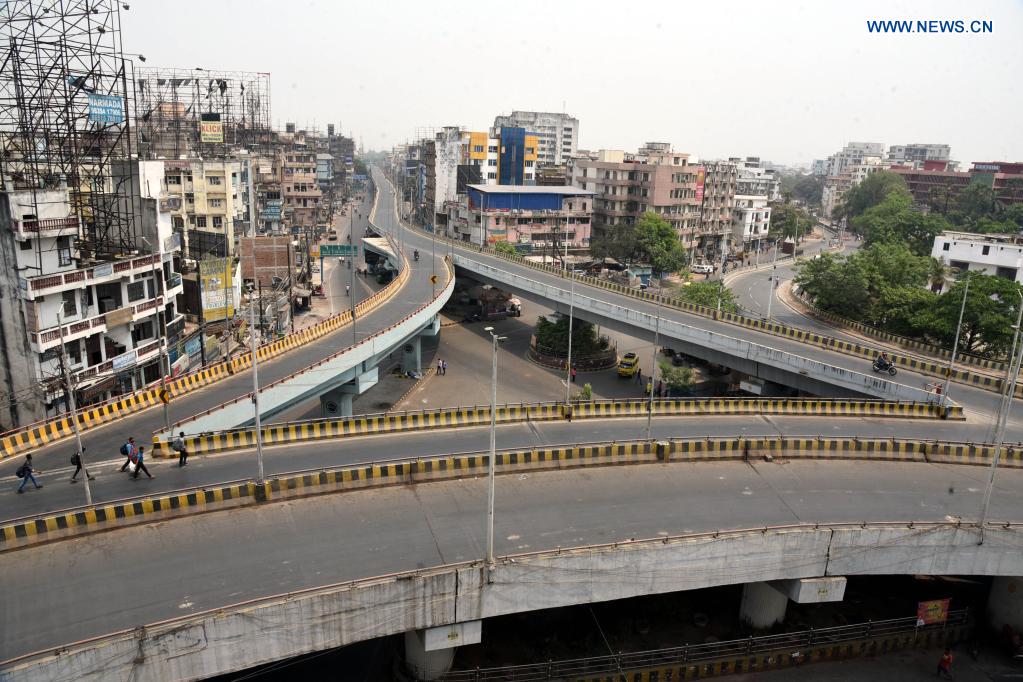 An almost empty street is seen in Patna, India, May 5, 2021. India's COVID-19 tally surpassed 21 million on Thursday as 412,262 new cases were registered across the country in the past 24 hours, said federal health ministry. (Str/Xinhua)