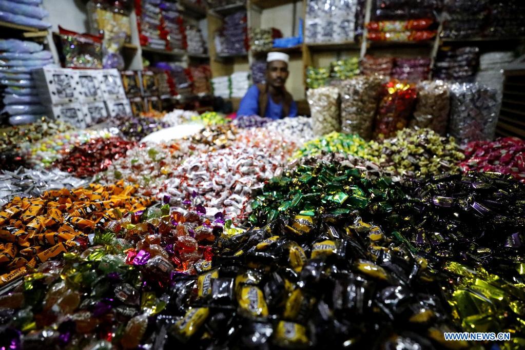 A vendor sells sweets at a market in Khartoum, Sudan, May 5, 2021. Eid Al-Fitr, also called the "festival of breaking the fast" that marks the end of the month-long dawn-to-sunset fasting of Ramadan, is celebrated by Muslims worldwide. (Xinhua/Mohamed Khidir)