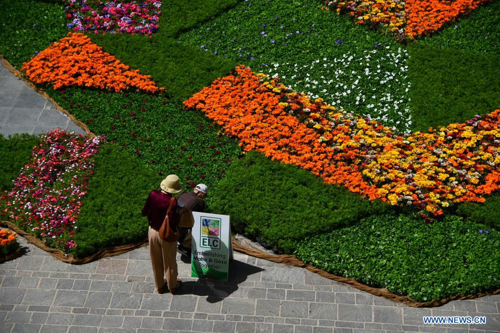 St. George's Square is decorated with flowers and plants during Valletta Green Festival in Valletta, capital of Malta, on May 7, 2021. The Valletta Green Festival was launched on Friday with this year's theme of "zero pollution". (Photo by Jonathan Borg/Xinhua)