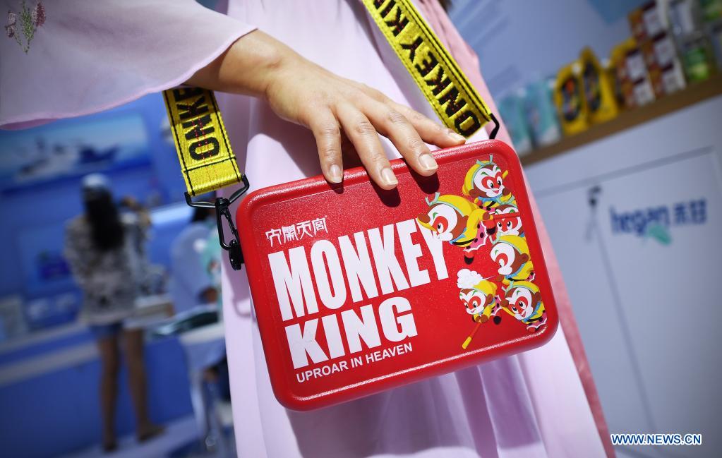 Photo taken on May 9, 2021 shows a domestically produced bag on display in the Provinces, Municipalities, Autonomous Regions of China Exhibition Hall during the first China International Consumer Products Expo in Haikou, capital of south China's Hainan Province. (Xinhua/Guo Cheng)