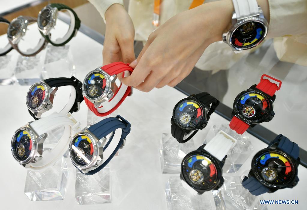 Photo taken on May 9, 2021 shows domestically produced watches on display in the Fashion Life Exhibition Hall during the first China International Consumer Products Expo in Haikou, capital of south China's Hainan Province. (Xinhua/Guo Cheng)