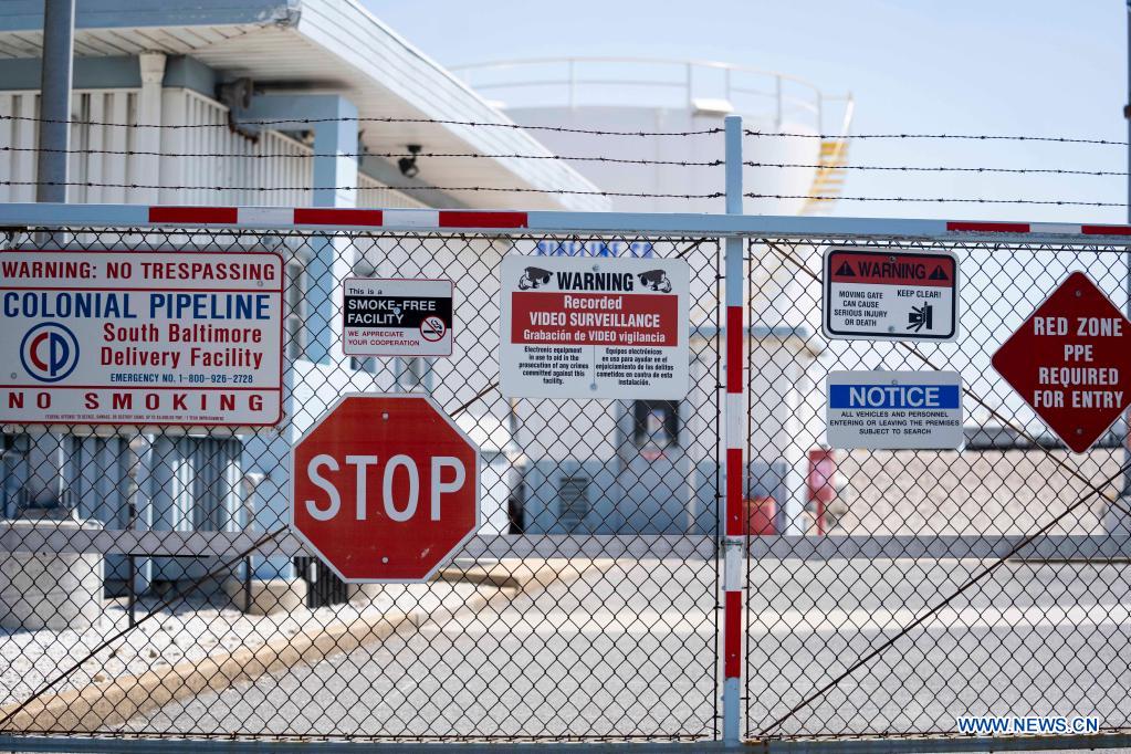 Photo taken on May 11, 2021 shows a Colonial Pipeline facility in Baltimore, Maryland, the United States. U.S. Secretary of Energy Jennifer Granholm on Tuesday urged Americans not to hoard gasoline as the operator of a main U.S. fuel pipeline is expected to fully resume operations in a few days after it was forced to shut down due to a cybersecurity attack. (Xinhua/Liu Jie)