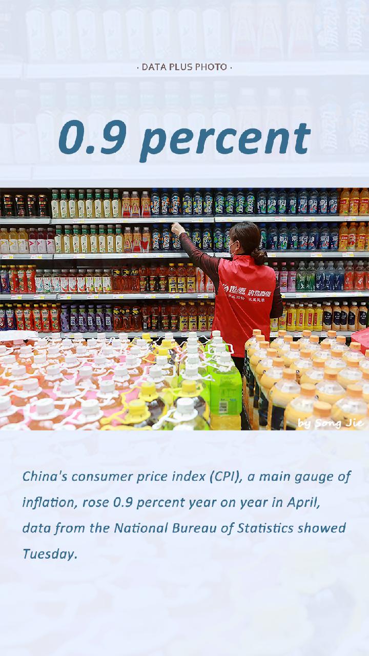 The consumer price index (CPI), a main gauge of inflation, rose 0.9 percent year on year in April, up from the 0.4-percent growth rate in March, according to data from the National Bureau of Statistics (NBS).