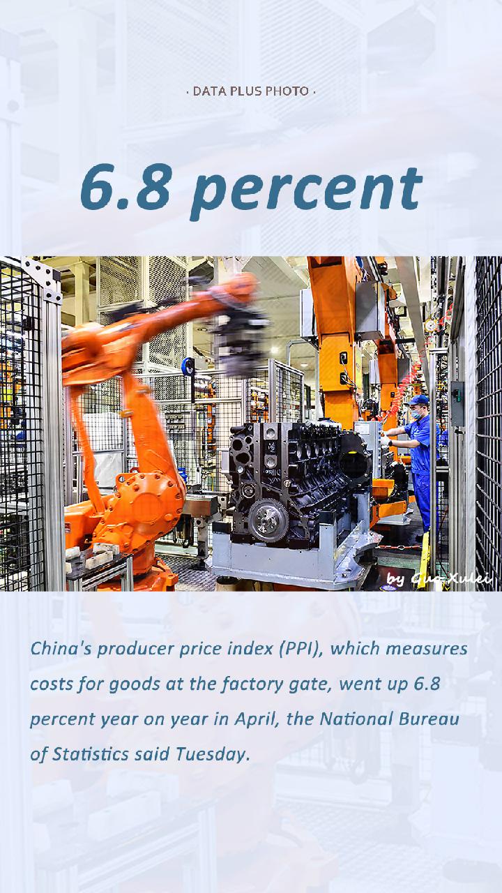 The producer price index (PPI), which measures costs for goods at the factory gate, went up 6.8 percent year on year in April, accelerating from the 4.4-percent rise in March, the NBS data showed.
