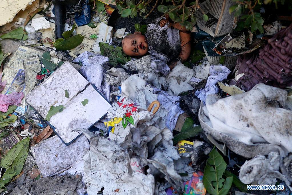 Photo taken on May 17, 2021 shows a room in a building hit by a rocket fired from the Gaza Strip, in southern Israeli city of Ashdod. A rocket hit a residential building in Ashdod city on Monday, causing damage and injuring three people, according to a statement by Israel's Magen David Adom emergency health service. The intense fighting between Israel and Gaza's ruler Hamas killed 204 Palestinians, including 59 children, and 10 Israelis, including a five-year-old boy and a soldier. (Ilan Assayag/JINI via Xinhua)
