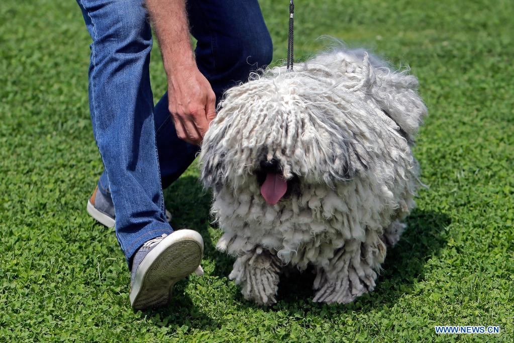 A Puli Grey dog competes at a dog show during the COVID-19 pandemic near Bucharest, Romania, May 23, 2021. (Photo by Cristian Cristel/Xinhua)