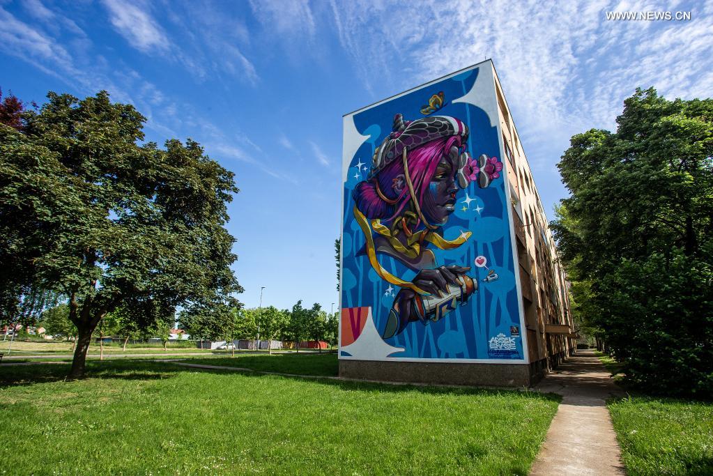 A mural is seen on the wall of a building in Vukovar, Croatia, May 27, 2021. Street art festival VukovART, which features murals created by world-famous artists on the walls and sidewalks, is held in Vukovar for the fifth year in a row. (Davor Javorovic/Pixsell via Xinhua)