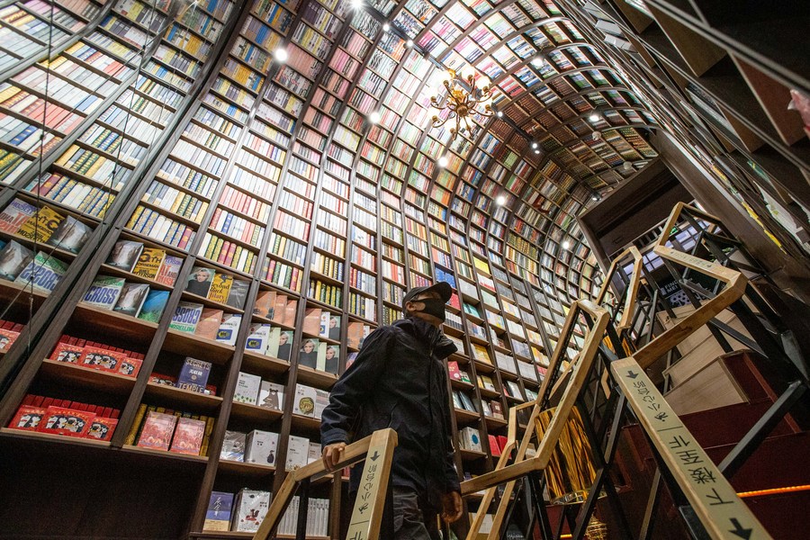 A man chooses books at a bookstore in Beijing, capital of China, April 21, 2020. (Xinhua/Li Jing)