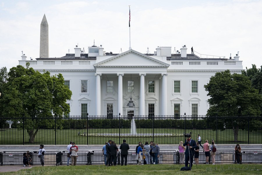 Tourists are seen near the White House in Washington, D.C., the United States, May 14, 2021. (Xinhua/Liu Jie)