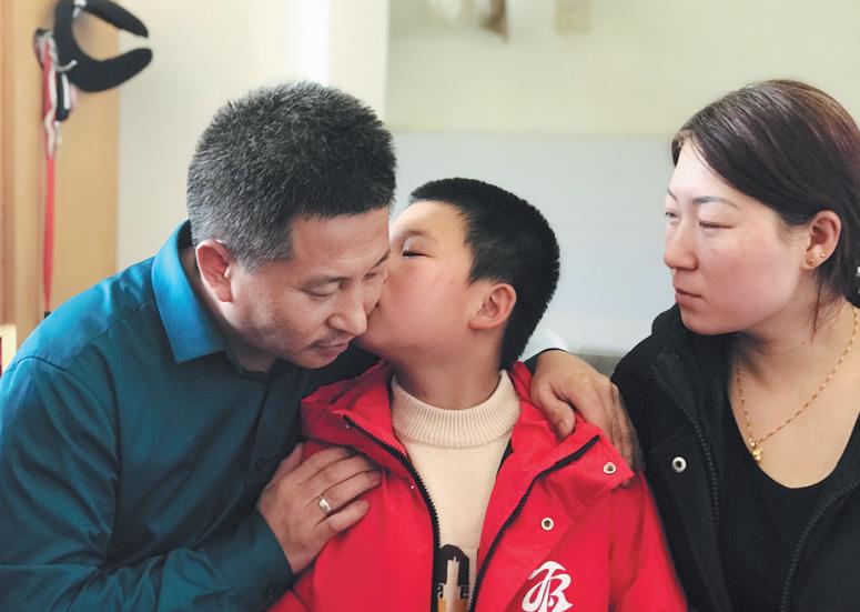 Liu Jingjun (center), who was abducted 11 years ago, is surrounded by his father Liu Liqin and his mother at their home in Taiyuan, Shanxi province, in 2020. [Photo by Yang Zhoufen/For China Daily]
