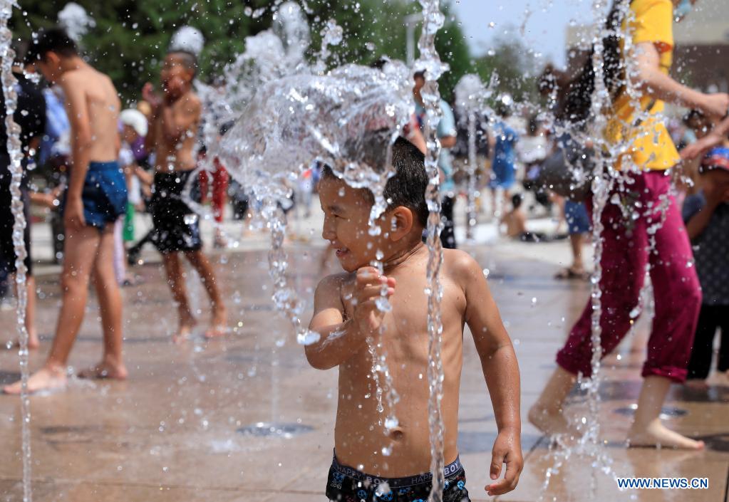 Children play in a fountain in Nur-Sultan, Kazakhstan, June 1, 2021. The amusement facilities in the park are open to children free of charge on Tuesday to celebrate the International Children's Day. (Photo by Kalizhan Ospanov/Xinhua)