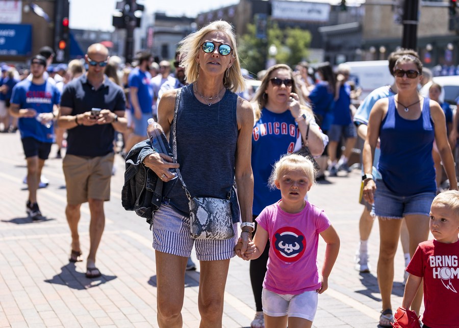People arrive at a Chicago Cubs' game with no attendance limits in Chicago, the United States, on June 11, 2021. (Photo by Joel Lerner/Xinhua)