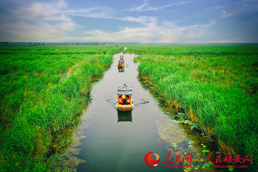 The Baiyangdian scenic spot in the Xiong'an New Area, north China's Hebei Province, started its trial operation on Tuesday after being upgraded. Listed as one of China's top-level tourist attractions, Baiyangdian is home to various wildlife species, including over 200 kinds of birds and more than 40 kinds of fish. (Photo provided by Baiyangdian Scenic Spot)