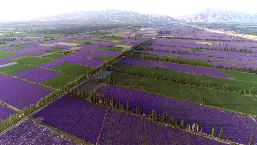 Lavenders bloom in the Ili River valley in Huocheng county, Ili Kazakh autonomous prefecture, northwest China's Xinjiang Uyghur Autonomous Region. (Photo/Courtesy of the media convergence center of Huocheng county)