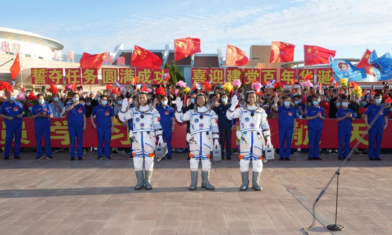 Three Chinese astronauts on Thursday successfully boarded the Tiangong space station. This is a new milestone in the development of China's space industry. When the carrier rocket propelled the Shenzhou-12 manned spacecraft into space, it was like a spear that pierced the US' severe technical blockade. This is not only a moment of excitement for the Chinese people, but also a moment of frustration for those who hype the US' "blockade" and "decoupling" with China.