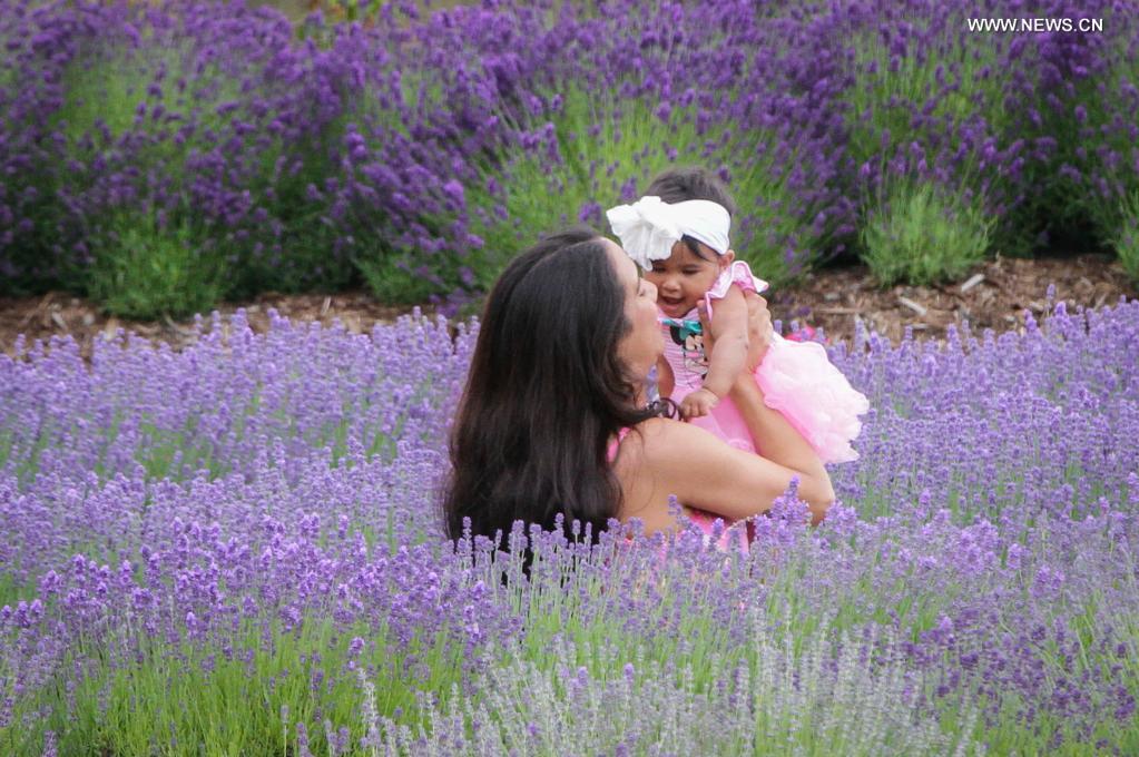 People visit a lavender farm in Richmond, British Columbia, Canada, June 19, 2021. (Photo by Liang Sen/Xinhua)