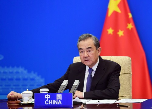 Chinese State Councilor and Foreign Minister Wang Yi chairs the UN Security Council open debate on “Peace and Security in Africa: Addressing Root Causes of Conflict in Post-Pandemic Recovery in Africa" via video link on May 19, 2021. (Photo from the website of China’s Ministry of Foreign Affairs)