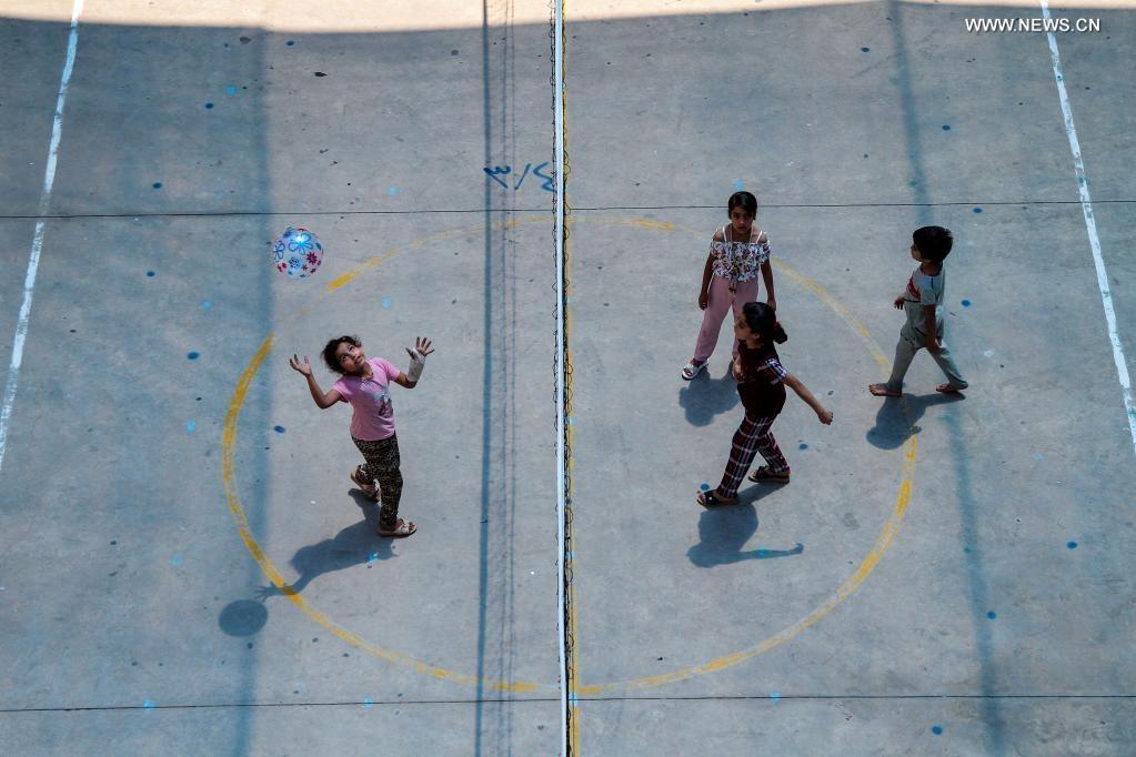 Children play at a school run by the United Nations Relief and Works Agency for Palestine Refugees in the Near East (UNRWA) at the Shati refugee camp in Gaza City, on June 20, 2021, World Refugee Day. (Photo by Rizek Abdeljawad/Xinhua)